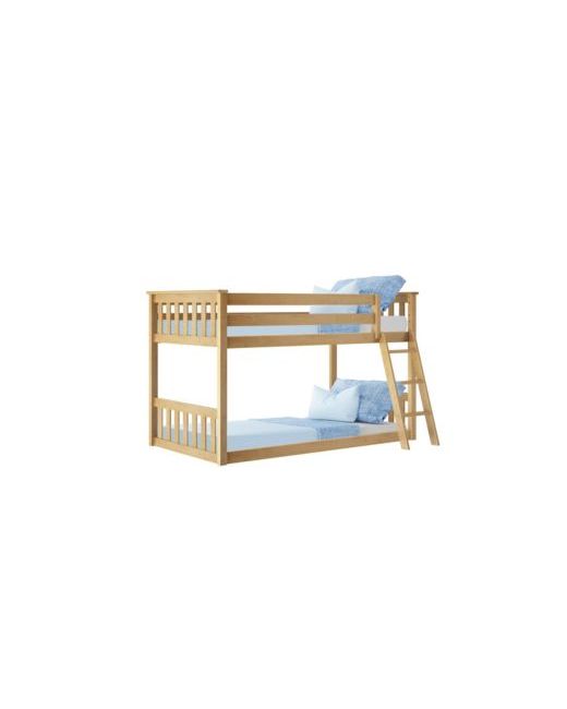 Introducing the Max and Lily Twin Over Twin Low Bunk Bed - where functionality meets style. Built with knot-free, solid pine wood, this low bunk bed effortlessly balances fun and durability. The low-profile design, standing at only 50 inches high, is perfect for compact spaces and younger children, with the bottom bunk just two inches off the floor for added safety. Safety is paramount - the top bunk features tall 14-inch guardrails. This bunk bed is compatible with standard twin size mattresses between 5 and 8 inches thick. No box spring or bunkie board is required for this bed. The angled ladder with rounded edges offers easy, secure access and can be installed on either side of the bunk to suit your room layout. The bed's sleek, modern look is accentuated by flush, color-matched hardware and slatted headboards and footboards. The low-voc finish promotes a clean and healthy sleep environment.