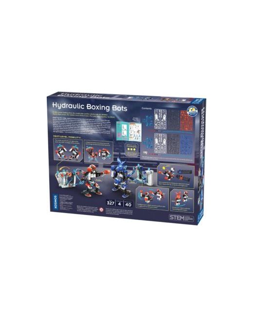 In this corner, hailing from the rough-and-tumble robotics lab: It is Robo-Boxer And in that corner, the wonder from Down Under: Put your mitts together for Kangaroo-Bot Ding Jab, dodge, uppercut These boxing robots use hydraulic power to move like real boxers. Packed with the excitement of a boxing match and the fun of constructing incredible mechanical models, this kit allows you to build two boxing robots and challenge a friend to a match. With complex shoulder gestures, two boxing punches jab and uppercut, three waist postures, and interchangeable heads, these robots are designed to float like butterflies and sting like bees. Use the handheld hydraulic controls to fight like a champ. Knock your opponent robot's head backward and score a point on the included scoreboard. Learn about how these amazing machines and hydraulics by Science, Technology, Engineering, and Mathematics (Stem) work. Leave the rocking and socking to the lightweights - this awesome Science, Technology, Engineering, and Mathematics (Stem) kit really packs a punch.