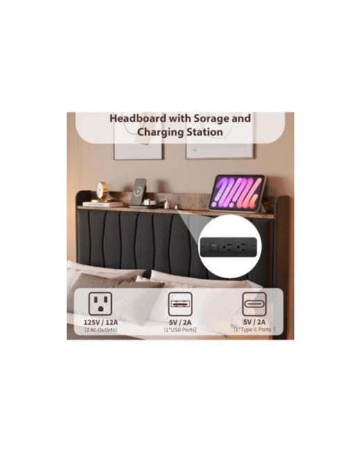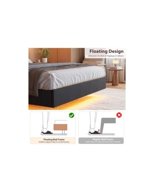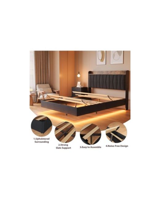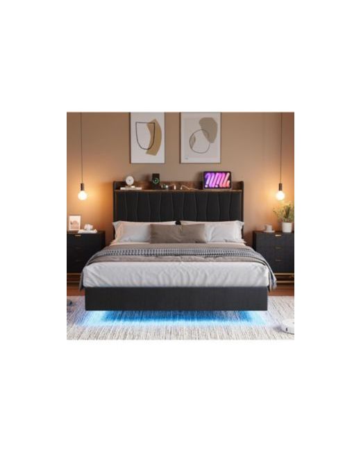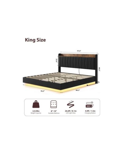 Floating Bed Frame King with Led Lights and Usb Charging Station – Modern Upholstered Platform Bed with Headboard Solid Wood Slats Support No Box Spring Easy Assembly NoiseFree Black