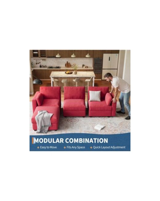 Orange Modular Sectional Sofa L-Shaped Couch with Movable Ottoman Convertible