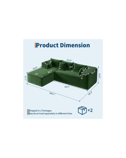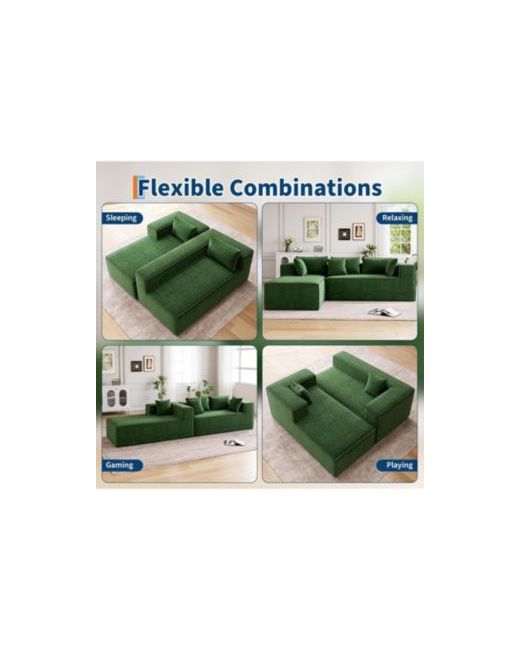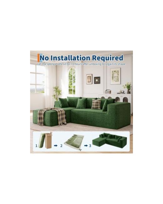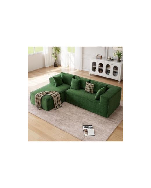 Green Modular L-Shaped Sectional Sofa Cloud Couch with Deep Seat Upholstered Chenille
