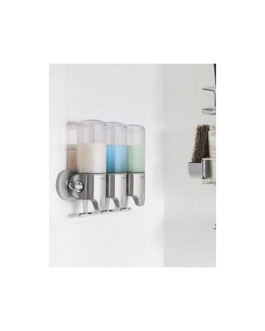 Organization is key... and ultra-easy with this innovative Triple Pump from simplehuman! Features three chambers for up to three liquids, durable stainless steel that wont rust or discolor, a wide opening for mess-free refills and extra hooks to hold other bath accessories. Easy to install with silicone glue and adhesive stripes (included).