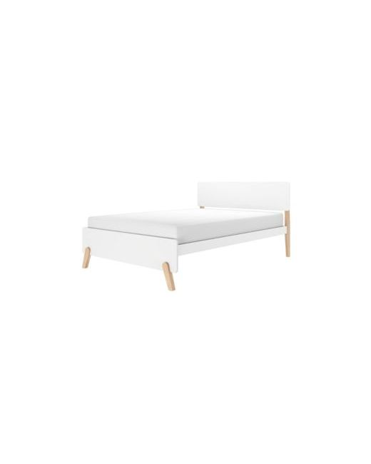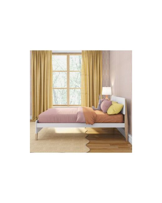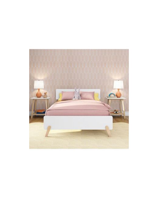 White Bed Frame Mid-Century Modern Solid Platform for Kids Strong Slat Support No Box Spring Needed blonde
