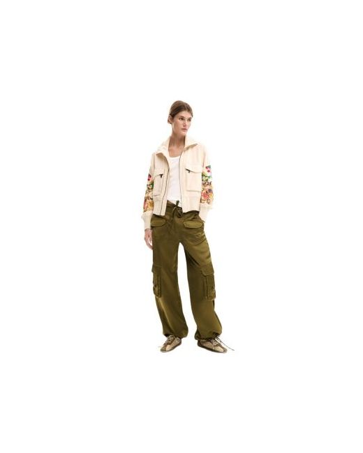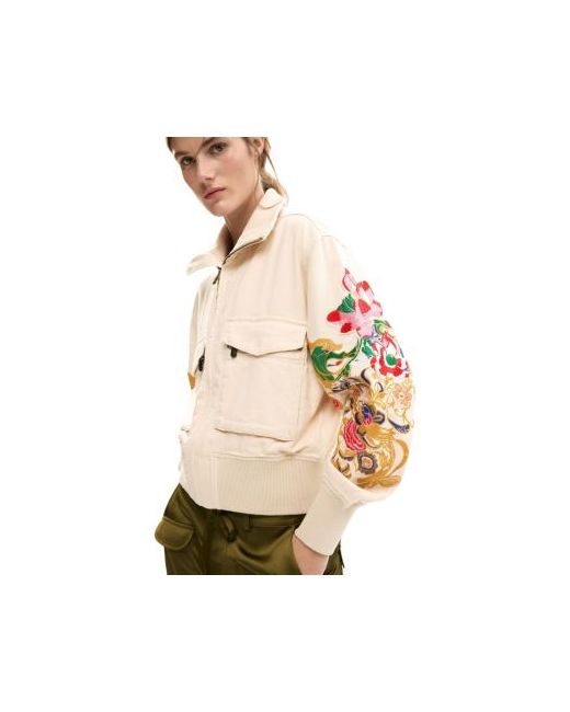Jacket with chest pockets, flower patch-style appliques on the sleeves and wide elasticated waistband.