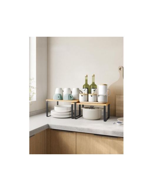 Black Stackable Expandable Cabinet Organizer Shelf Metal Wood Spice Rack