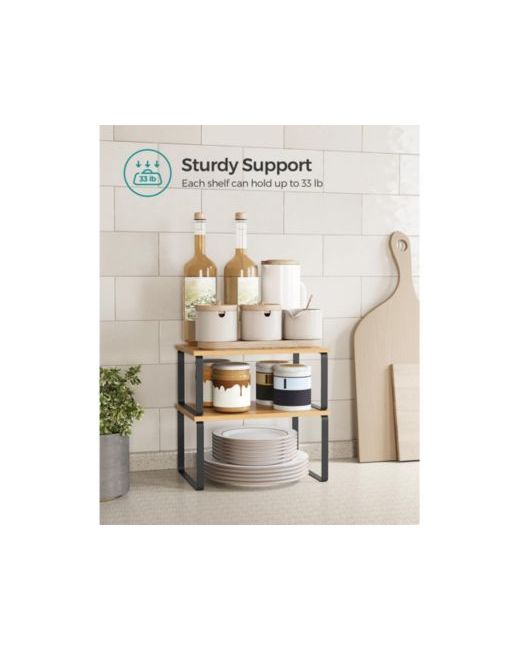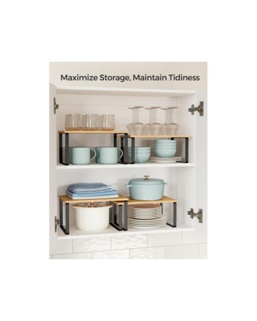 Flexible, stackable shelving units quickly maximize kitchen space. Four metal-framed shelves can be placed on countertops, inside cabinets, or in pantry for categorizing spices, canned goods, or small appliances. The engineered wood countertop and steel frame perfectly complement modern kitchen styles, with each shelf supporting up to 33 lbs (approximately 15 kg). You can arrange the shelves side-by-side, nested, tiered, or L-shaped to suit your kitchen layout. Two 7.7-inch (D) x 11.7-inch (W) x 6.2-inch (H) shelves and two 7.3-inch (D) x 11.7-inch (W) x 5.4-inch (H) shelves are tool-free. Weight: 2.86 lbs (approximately 1.3 kg).