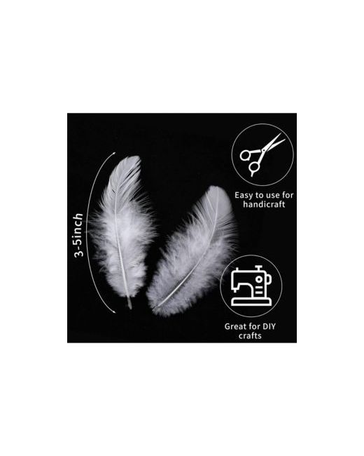Great Product quantity: 300 white craft feathers in a package, 100 per packet. Lightsome: These rooster feathers are very light and supple, soft feathers are a good choice for your handmade crafts. Suitable Size: 3-5 inches (7-12cm) craft feathers bulk, suitable length and shape make feathers easy for you to decorate your crafts. Comfortable Materials: our feathers for crafts are strictly selected, you can use it with confidence in your handmade projects. Strong Plasticity and Applicability: These colorful feathers are very light and supple, is very suitable for fun crafts in kindergartens, as well as clothing, wedding, mask, hats, baby showers, birthday parties or themed parties.