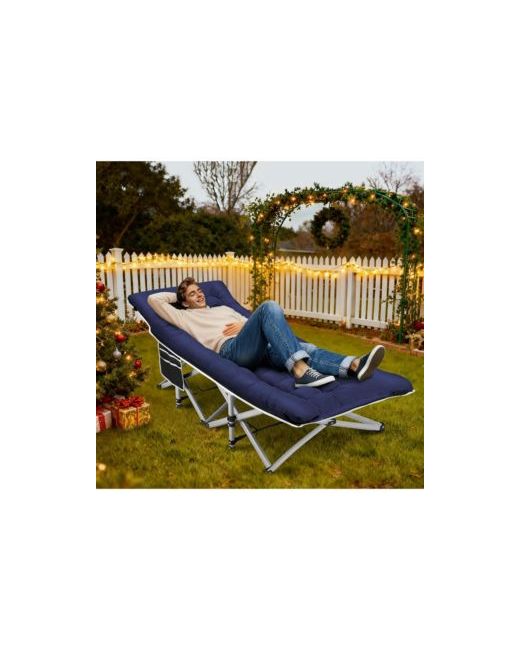 Cots for Sleeping: includes an extra soft mattress for comfortable sleep, removable for hot weather. Foldable and Portable: easy to set up in minutes, transport with carry bag, mattress rolls compact. Folding size compact for storage. Durable Structure with 600Lbs Max Load: triangular construction with thicker steel, non-slip pads for stability, won't squeak or shake. Size suitable for adults. 28" Extra Wide with 18degree(s) Tilt Design: wide camping bed for adults, tilted top for head comfort, suitable for camping, home and office use. How to Open: release belt buckle, press down middle on both sides to unfold.