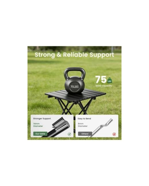 Lightweight Folding Design: Each camping table weighs only 2.46 lbs, making it easy to lift, carry, and transport even on long outdoor trips. The foldable, compact design allows the portable table to fold into a small size, neatly fitting into a backpack, car trunk, or Rv storage space. Easy Assembly and Storage: Designed for quick and easy setup without tools. Comes with a clear instruction manual for easy assembly. Includes a dedicated storage bag for convenient organization and transportation. Ideal Size for Daily Use: Each camping table has a tabletop of 16.5 x 13.9 inches, providing ample space for food, drinks, or camping gear. Two tables can be placed side by side to increase the usable area. The table height is 11.5 inches, suitable for use with camping chairs.