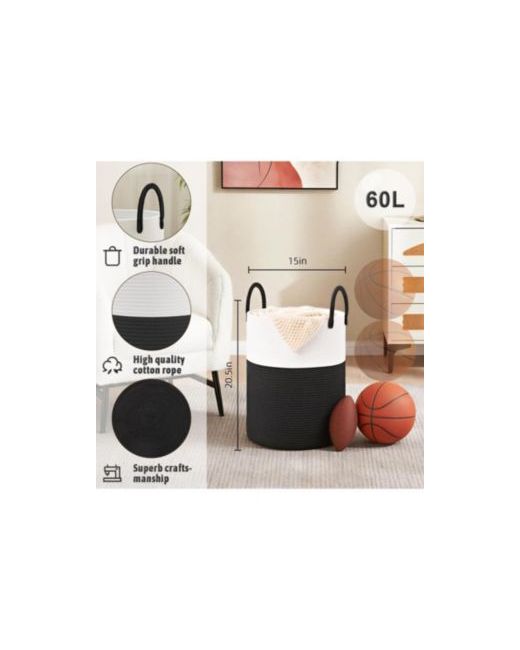 Size S measures 40L (10.5" L x 9.5" W x 4.5" H) Size M measures 60L (12" L x 11" W x 4.5" H) Size L measures 80L (13" L x 11.5" W x 4.5" H) and Size Xl measures 100L (13.5" L x 12.5" W x 4.5" H). This cotton rope laundry basket features a stylish, hand-woven design that adds an elegant and charming touch to any room. Crafted from durable cotton rope, it offers excellent breathability and smooth air circulation, helping to prevent moisture buildup and odors in your clothing. As a versatile storage solution, it serves equally well for holding laundry awaiting washing or for organizing toys, blankets, pillows, and linens. Its collapsible design allows for easy, compact storage to restore the basket's shape, simply fill it with pillows or blankets to effortlessly mold it back into form. Weight: 2.62 lbs.