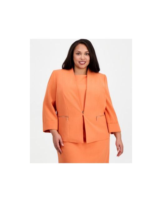 Upgrade your work layers with this plus size collarless blazer from Kasper, featured with zip pockets and a chic hook front.