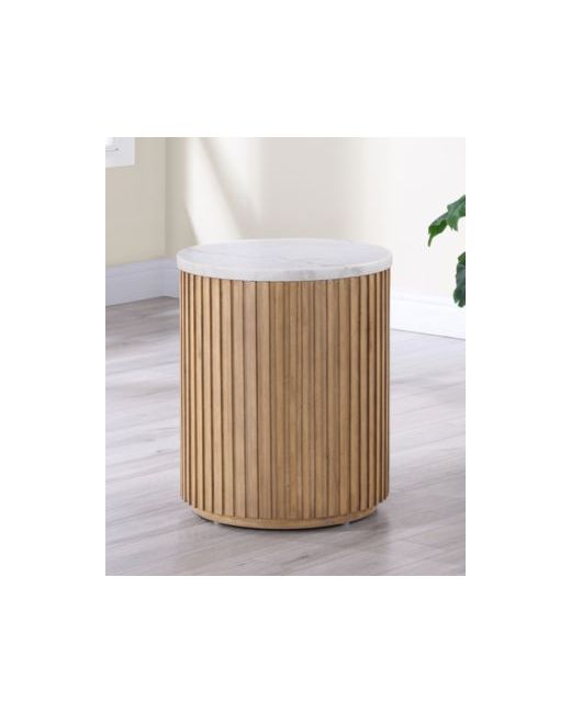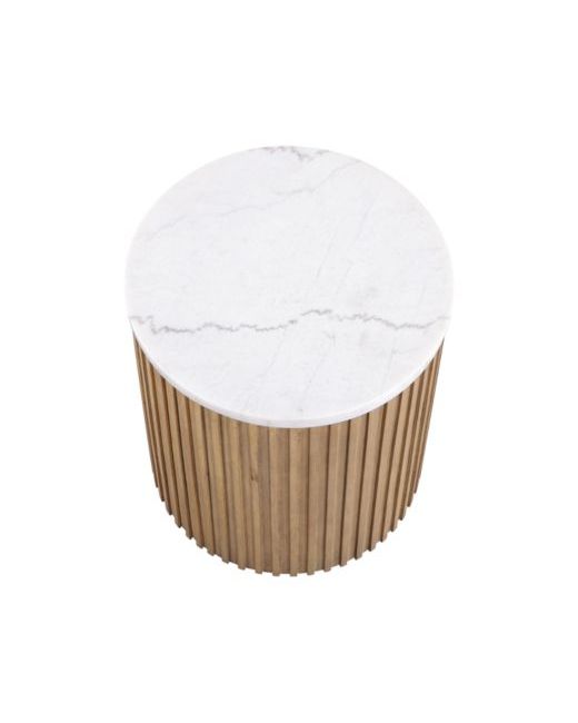 Inspired by art deco and empire styling, the Colby 18" round white marble end table brings modern elegance to any space. The white marble top radiates sophistication and beauty, perfect for those who appreciate refined design. This versatile piece is ideal as a side table companion or at the end of a sofa, effortlessly blending style and functionality. With its reeded base and spacious round top, the Colby end table offers ample room for living room essentials, combining timeless design with practical utility.