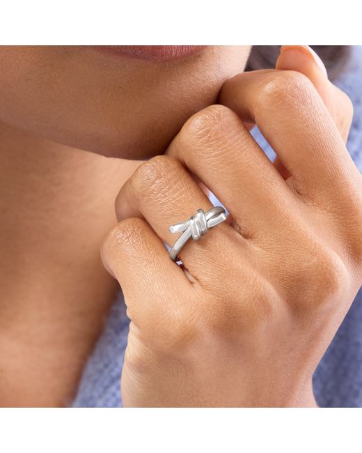 A little knot with a lot of meaning. Crafted in platinum plating, this ring features our unique Abbott Lyon knot - a subtle symbol of love, connection, and promise. Whether gifted to yourself or someone special, this piece is a little reminder of the bonds that tie us together. Wear it solo for effortless style or pair with the matching twisted knot bangle for a layered look. NEED TO KNOW Material: Platinum Plated Stainless Steel Five-year quality guarantee Comes in luxury packaging Band Thickness: 2.6mm Knot: H5mm x W13.5mm x D3.5mm Available in 6 sizes: H J L N P R