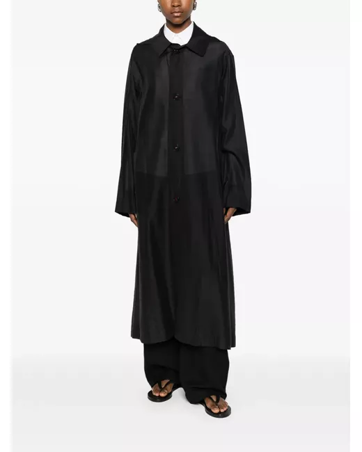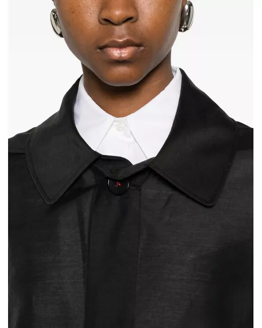 black front button fastening long sleeves two side slit pockets straight hem