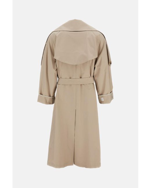 Long double-breasted wrap trench coat in water-repellent technical twill.Technical details: wide lapel collar, back cape, and asymmetric yoke.Raglan sleeves with sewn turned-back cuffs and contrast trim.Closure with fabric belt and logo-embossed leather ends.Tailored finishes: epaulettes on the shoulders, "dot" stitching, and welt pockets.Partially lined interior in taffeta with logo jacquard ribbon details.Central back vent for maximum comfort.Color: white.