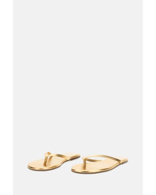 Metallic gold leather thong sandalsFlat rubber-covered sole