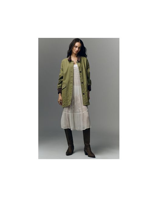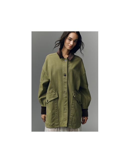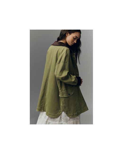 Perfect for your spring outerwear rotation, this longline barn jacket features a button front, flap pockets and corduroy trims for a touch of texture. Oversized Barn Coat Jacket by Pilcro, Women's Size: 2XS, Cotton/Lyocell/Spandex at Anthropologie