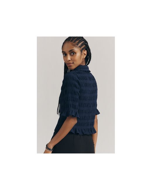 All-over smocking lends personality to this button-front crop top, detailed with a spread collar for a tailored touch and sweet ruffle trims. Ruffle Button-Front Top by Maeve, Women's Size: XS, Polyester/Elastane at Anthropologie