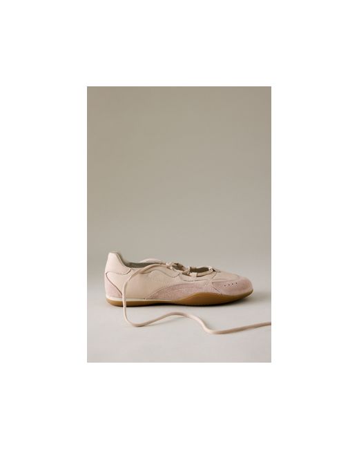 Meet the Sneakerina - combining the comfort of a sneaker with the elegance of ballet flats. Crafted with mixed suede and leather, these trainers feature laces that wrap around the ankle. Parker Ballet Trainers by Bronx in Pink, Women's Size: 37, Leather/Rubber/Suede at Anthropologie