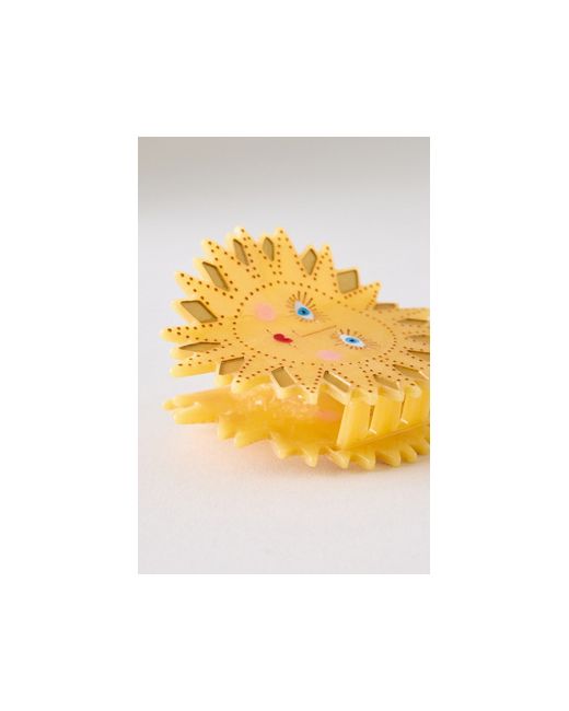 By Solar Eclipse Crafted with acetate made from recycled wood pulp Extra-strong hinge for lasting hold Double-sided Handpainted design made in small batches Imported Handpainted Celestial Sun Claw Hair Clip by Solar Eclipse in Yellow, Women's, Tin/Acetate/Wood at Anthropologie