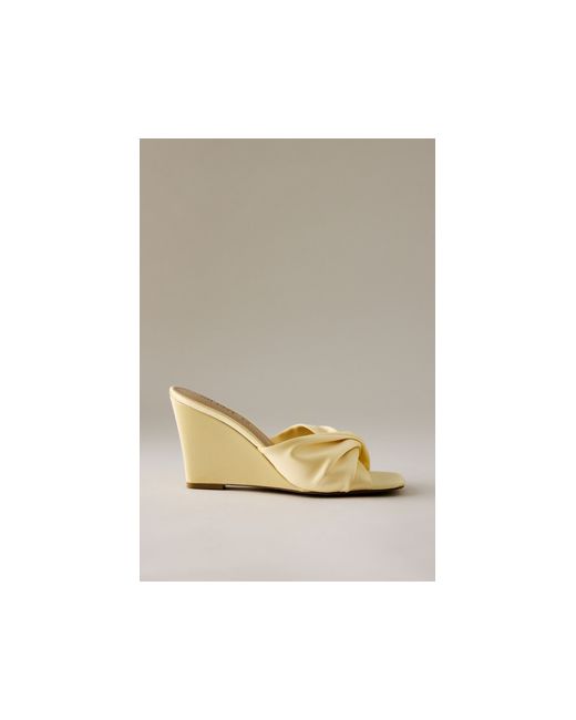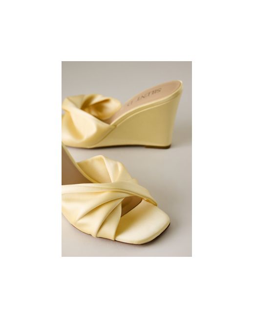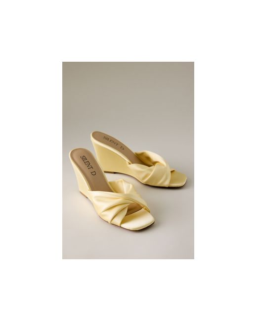 By Silent D Raffia & Satin upper, heel Polyurethane insole Rubber sole Slip-on styling Imported Katia Wedge Heels by Silent D in Yellow, Women's Size: 37, Rubber/Polyurethane/Satin at Anthropologie