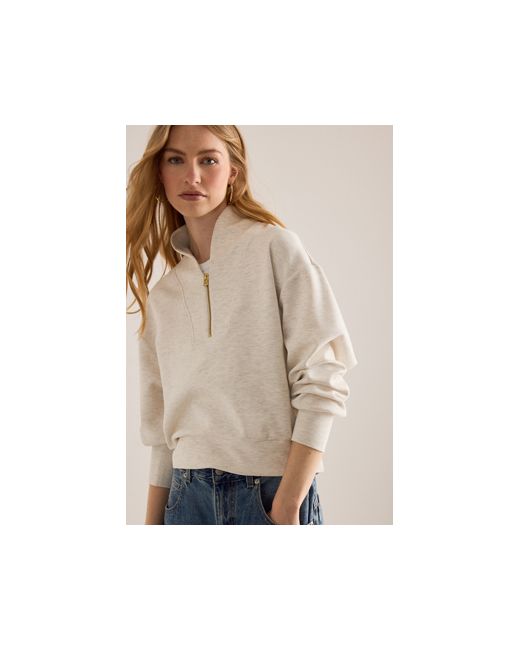 Crafted from Varley's premium DoubleSoft® fabric, this luxe layer features an elegant high neck, relaxed drop shoulders and a subtle cropped length. Davidson Half-Zip Sweatshirt by Varley in White, Women's Size: Small, Polyester/Viscose/Elastane at Anthropologie