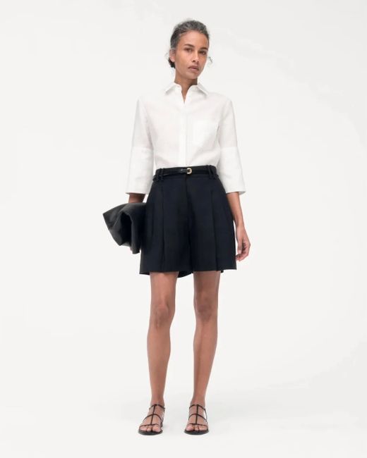 The Pleated Short in Black by AnotherTomorrow is a polished, pleated short crafted in a lightweight linen. 100% Linen Front fly with zipper and hook and bar Corozo button closure Sits at natural waist