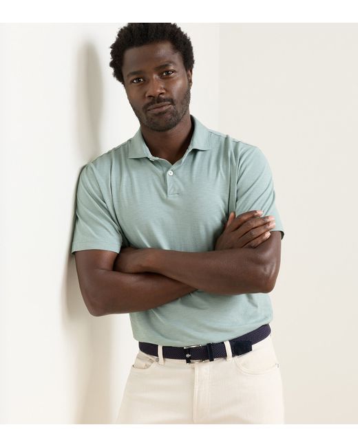 The Journeyman features a lightweight slub knit pima cotton fabric with a relaxed look and a subtle texture. Designed with an Italian-inspired cutaway collar and mother-of-pearl buttons. peter millar, peter miller, golfing, peter millar uk, peter millar uk golf