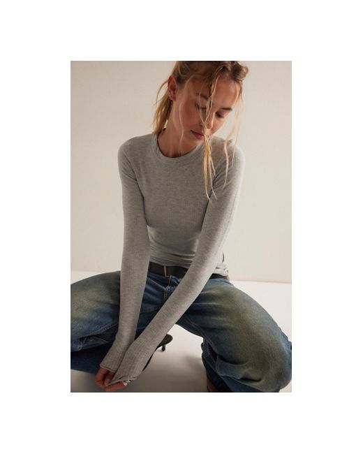 Just as cute as it is cozy, this super soft long sleeve is featured in a staple silhouette and slightly ribbed fabrication, perfect for lounging at home or styling for a more put-together 'fit. * Scoop neckline * Raw hems * Lush modal fabrication So Soft Seamless Modal Long Sleeve by Intimately at Free People in Heather Grey, Size: XS/S