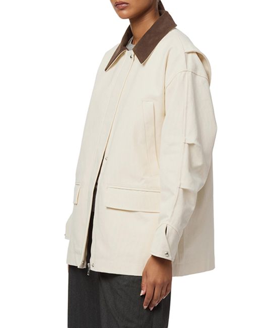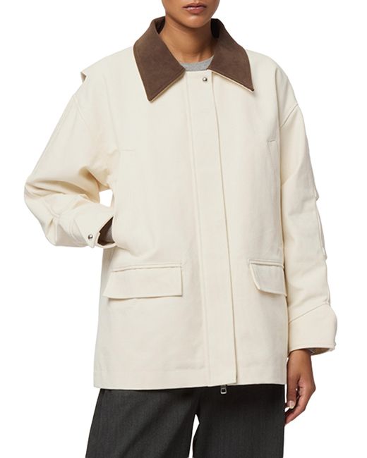 Crafted of durable cotton canvas, Apparis' Clive workwear jacket is tailored with a relaxed silhouette and multiple pockets. This piece features a contrast spread collar for a touch of color. Spread collar Long sleeves, button-tab cuffs Side welt and flap pockets Front zip closure and storm snap placket 100% cotton Lining: 100% polyester Dry clean Imported SIZE & FIT About 30" from shoulder to hem Model measurements: 5'10" tall Model is wearing a US size Small. Outerwear And Swimwear - Down > Apparis > Saks Fifth Avenue. Apparis. Color: Off White And Dark Brown. Size: XS.