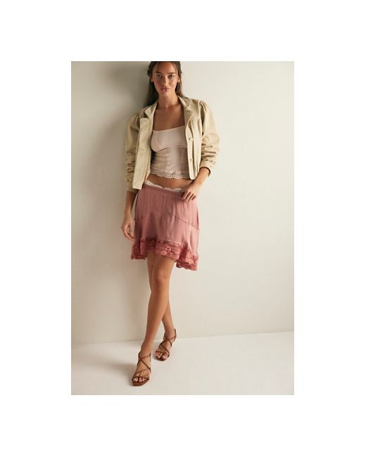 Layering is a breeze with this dreamy half slip from Intimately- featured in a soft, flowy fabrication with a crochet trim for a romantic, effortlessly chic look. **Fit:** High-rise, knee-length, A-line **Features:** Soft fabrication, smocked elasticated waistband, seam detail, crochet trim **Why We ❤ It:** Great for layering under an oversized tee. Midnight Muse Half Slip by Intimately at Free People in Old Rose, Size: XS