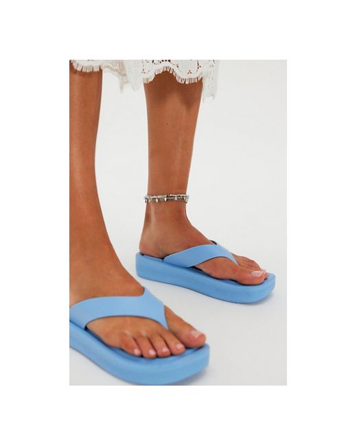 An elevated take on classic flip-flops, these feature thick thong straps, a cushioned footbed, and flatform soles for added height. **Features:** Slip-on style, thick, thong uppers, cushioned footbed, square toe, platform soles **Why We ❤ It:** Effortlessly elevate casual ‘fits with these staple sandals. Darcie Platform Flip Flops by Jeffrey Campbell at Free People in Powder Blue, Size: US 6