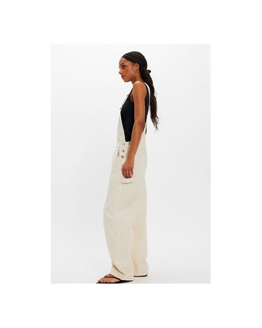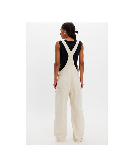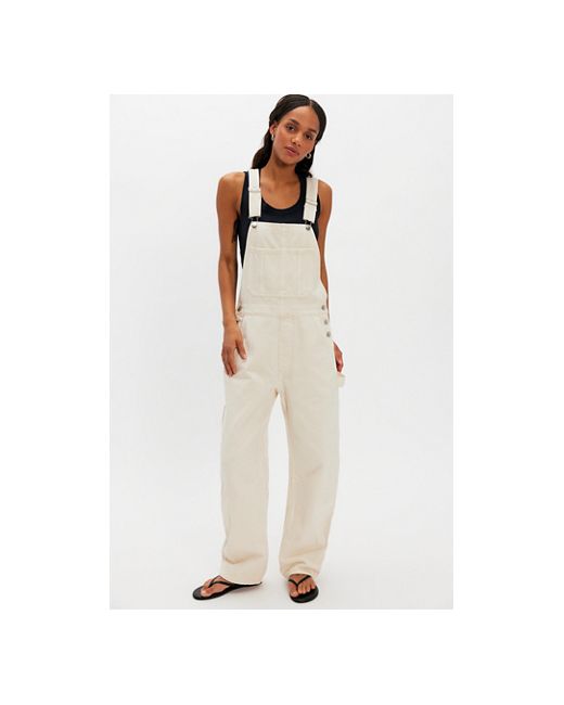 Slightly arced legs add relaxed flair and modern shape to these classic overalls from Rolla's. **Fit:** Relaxed fit, barrel leg, arc outseam **Feel:** Soft-touch, cotton-rich denim with minimal stretch **Features:** Patch chest pockets, square neckline, button closures at hips, adjustable crisscross back straps, side and back pockets Rolla's Arc Barrel Overalls at Free People in Cream, Size: Small