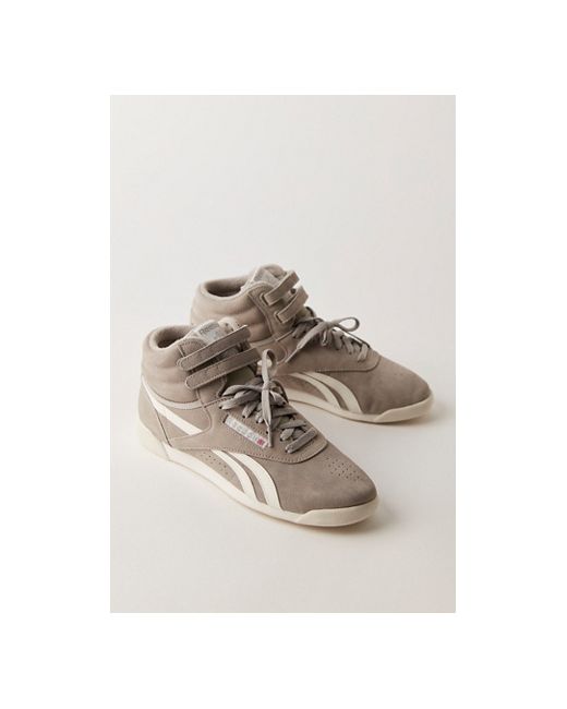 This ultra-cool pair reimagines Reebok's Freestyle sneakers with muted colors, featuring the iconic high-top silhouette, adjustable straps, and leather side stripes that make the style recognizable. * Suede uppers with synthetic leather overlays * Lace-up, high-top sneakers * Textile lining * Rubber outsole Reebok F/S Hi Sneakers at Free People in Escape Grey/Chalk, Size: US 8
