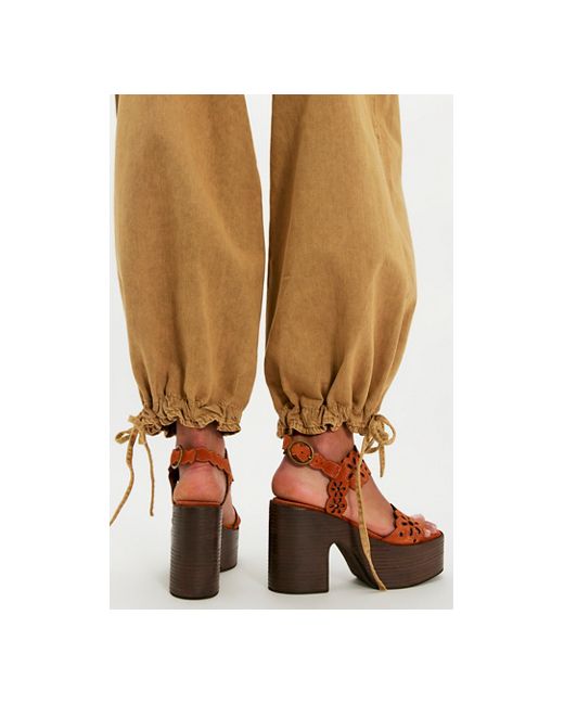 Slip into groovy styling with these dramatic platforms from FP Collection, featuring suede straps with a cutout flower design, contrast stitching, and a platform sole for an effortless, elevated look. * Leather uppers * Adjustable buckle straps * Round toe * Platform sole with block heel * **Heel Height:** 4.13 in, **Platform Height:** 2.36 in Covent Garden Platforms by Free People in Bombay Brown, Size: US 7
