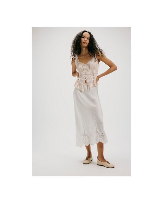 A femme dream, this romantic top features a luxe satiny fabrication, a fitted, tiered silhouette, and lace accents for a delicate touch. * Sleeveless * All-over bow details * Button-front closure * Ruffled hem Bliss Top at Free People in Pink, Size: XS