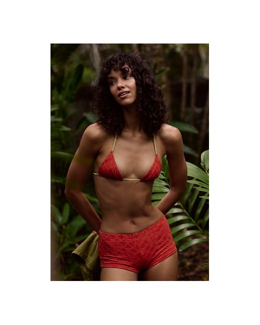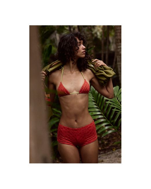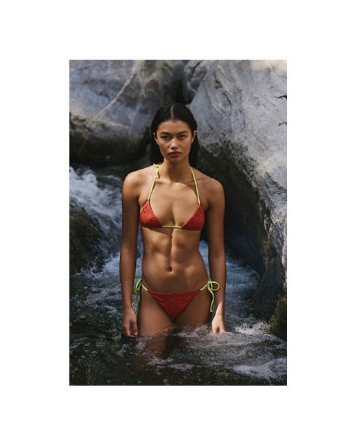 Timeless triangle top from our free-est Swim collection, featured in a textured fabrication with adjustable sliding coverage and ties at the neck and back. **Fit:** Triangle-style, adjustable fit **Features:** Recycled fibers with a textured feel; fully-lined, sliding coverage, adjustable ties at the neck and back **Why We free-est Michelle Bikini Top at Free People in Paprika, Size: Medium