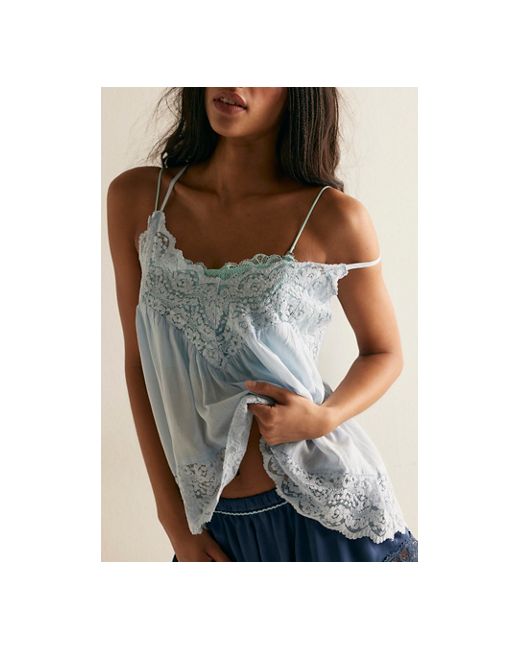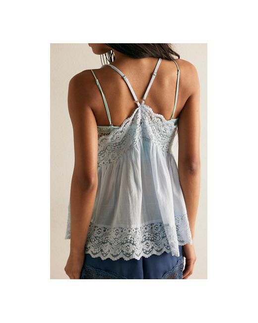 This cami from Intimately is featured in a lightweight cotton-blend fabrication with lace detailing for a touch of femme. **Fit:** Billowy, shapeless silhouette **Features:** Cotton-blend fabrication, subtle V-neckline, racerback adjustable straps, scalloped trim and detailing throughout **Why We ❤ It:** Layer with your favorite lacey bralette for a romantic look. Fiona Cami by Intimately at Free People in Blue Finch, Size: XS