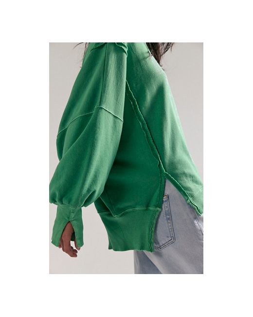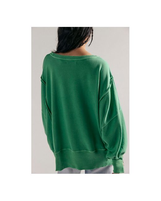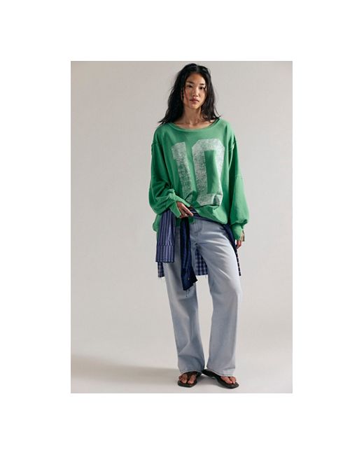 Just as cool as it is classic, this goes-with-anything long sleeve tee is featured in a slouchy, relaxed fit with worn, varsity-inspired number graphic at front for a true lived-in look. **Fit:** Slouchy, relaxed fit **Features:** Scoop neckline, dropped shoulders, side slits at bottom, ribbed hems, defined seaming **Why We We The Free Graphic Camden Pullover at Free People in Green Combo, Size: XS