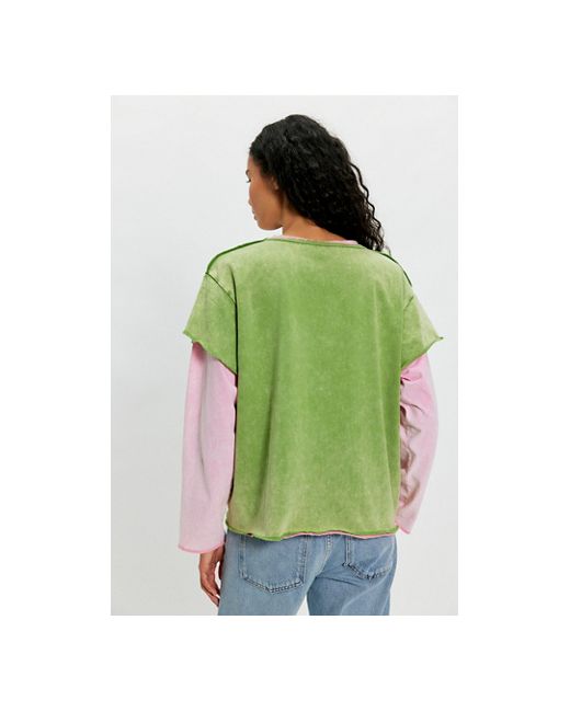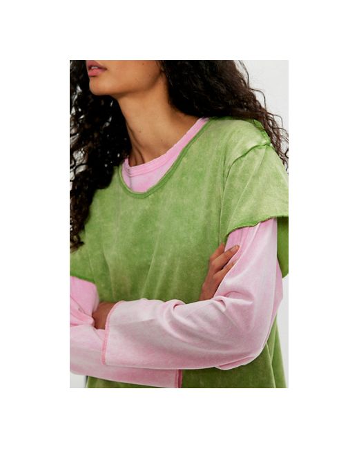 The perfect two-in-one style, this effortless top from Found is crafted from a sun-faded cotton fabrication. It features an oversized long-sleeve base and a contrasting relaxed-fit tee layered on top for an endlessly comfy design. * Drop shoulders * Long-sleeves * Exposed seams * Subtle distressed details * Raw edge Found Double Layer Long-Sleeve Tee at Free People in Forest Green And Pink, Size: XS