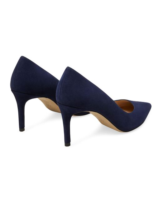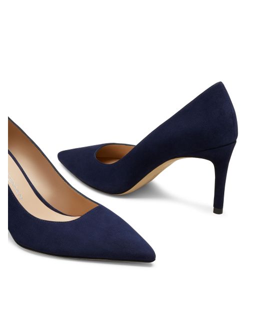 These Stuart Power 75 pumps from Stuart Weitzman, crafted of suede, are designed with a pointed toe and stiletto heel. Point toe Slips on Suede upper Leather lining Leather sole Made in Spain SIZE Stiletto heel: about 3" (75mm) ABOUT THE BRAND Designer Stuart Weitzman started his career designing for his father's shoe company, before launching his own brand in 1986. Known for his glamorous pumps and over-the-knee boots, Weitzman has also incorporated unique materials in his designs, ranging from Lucite and wallpaper to cork, vinyl and even gold. Today, the label continues to create classic, feminine silhouettes that balance both comfort and style. Women's Shoes - Stuart Weitzman W Shoes > Stuart Weitzman > Saks Fifth Avenue. Stuart Weitzman. Color: Nice Blue. Size: 9.