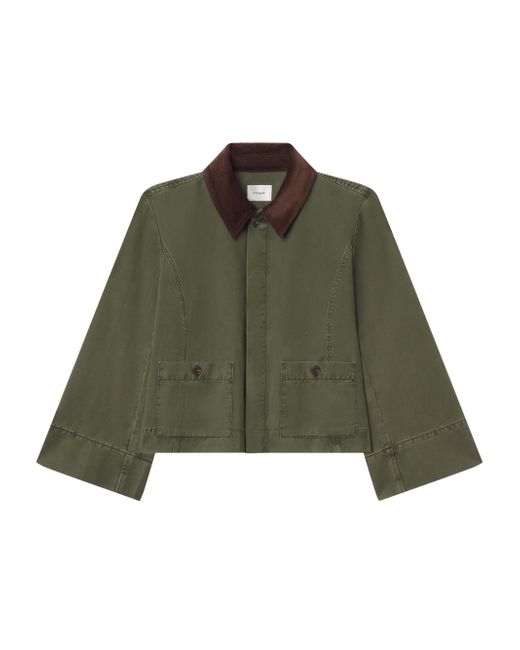 Crafted of cotton, the Mini Swing jacket from Frame is styled with a slightly cropped silhouette featuring a contrasting corduroy collar. Point collar Long sleeves Side button-through patch pockets Button-front closure 100% cotton Dry clean Imported SIZE & FIT About 21.5" from shoulder to hem Model measurements: 5'10" tall Model is wearing a US size Small ABOUT THE BRAND In 2012, Erik Torstensson and Jens Grede combined their California-modern point of view with a European sensibility to establish FRAME. The ready-to-wear label, first known for its denim, has expanded to leather, cashmere and tailoring-all with an effortless ethos at the core. Focusing on quality fabrics and foundational dressing, the brand delivers chic everyday staples favored by Hollywood starlets and beyond. Contemporary Sportswear - Denim And Bottoms > Frame > Saks Fifth Avenue. FRAME. Color: Military Green. Size: XS.