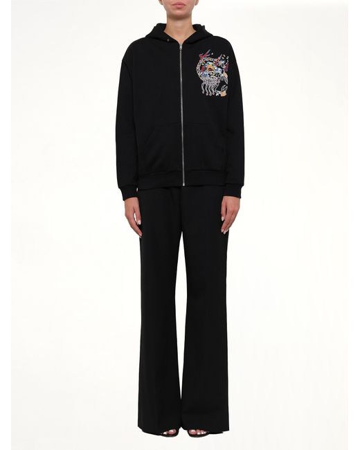 Givenchy's Embroidered Zip Hoodie in Black is a zip-front hooded sweatshirt with embroidered detailing. Designed in a classic black finish, it offers a clean, versatile look with a relaxed everyday feel. Zip-front closure Embroidered detailing Attached hood Black colourway Long sleeves Model is 178 cm and wears size M SKU: BW705N3Z17 001