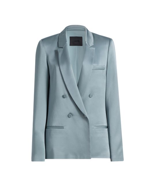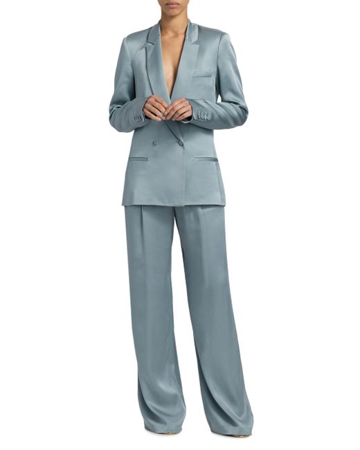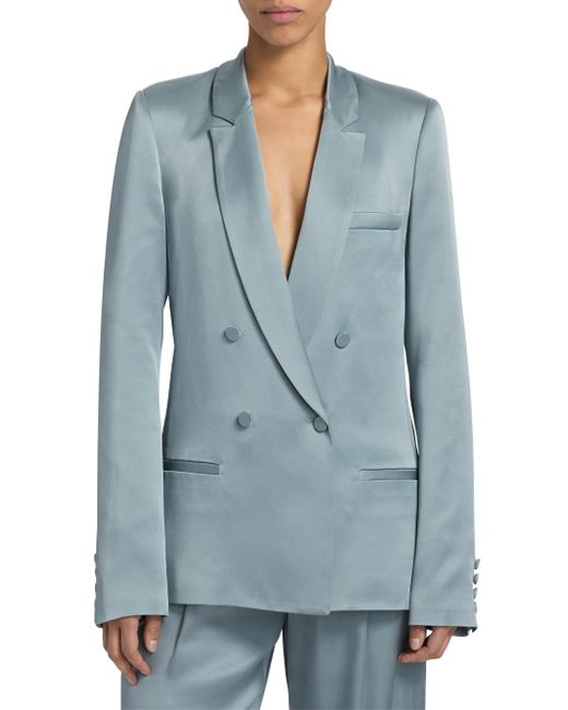 Finished in a luxurious satin, LaPointe's double-breasted blazer is tailored with notch lapels, welt pockets, and kissing-button cuffs. Notch lapels Long sleeves, button cuffs Chest and side welt pockets Double-breasted button-front closure 60% acetate/40% viscose Dry clean Made in USA SIZE & FIT Model measurements: 5'10" tall Model is wearing a US size 4. Designer Lifestyle - Designer Lifestyle Sport > Lapointe > Saks Fifth Avenue. LaPointe. Color: Light Slate. Size: 0.