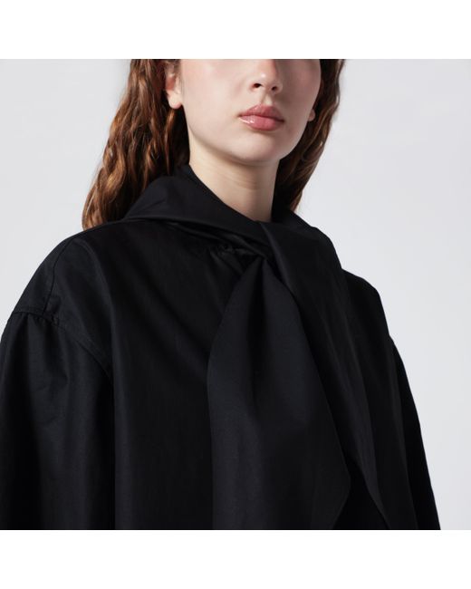 Jacket by TOTEME in organic cotton• Color: Black• Long sleeves with adjustable tabs at the cuffs• Hood with scarf to tie around the neck• Two welt pockets• Boxy silhouette