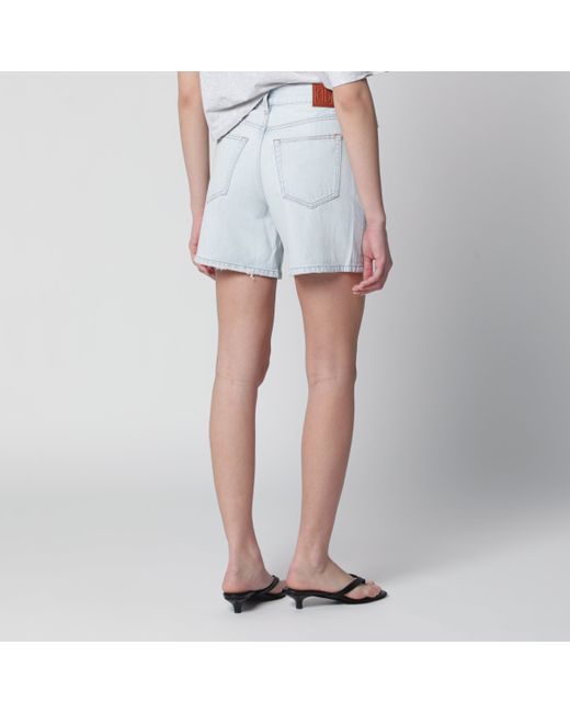 Anine Bing shorts in cotton denim• Color: Lucid Blue• High waist with belt loops• Front zip and button closure• Five classic pockets• Back logo patch• Visible stitching• Hem with distressed details