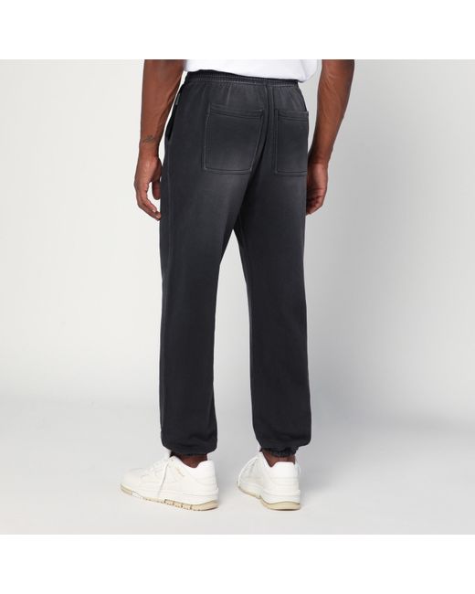 Jogging pants by Represent in washed black cotton featuring an elastic waistband with drawstring front logo lettering two side welt pockets with branded metal detail and two back patch pockets.