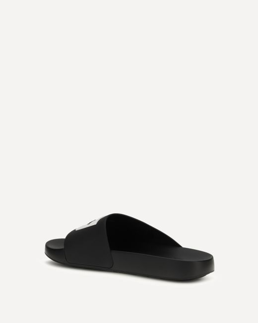 The rubber Slippers by Givenchy, flat mules from the Label Slide line, combine comfort and contemporary style. The asymmetrical design and rubber "GIVENCHY Paris" label on the upper add a distinctive touch, while the rubber insole with embossed signature and embossed signature under the sole complete the look with luxurious details. Perfect for those seeking practicality without sacrificing a touch of elegance, these slippers are ideal for a casual, urban style. size: 42, 45.5, 40, 41, 44, 45, 43, 39, 46