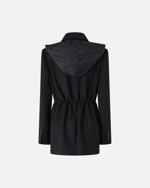 Single-breasted jacket with hood and fitted waist, made from twill-woven wool-blend fabric with a brushed, flowing feel. Discover a new take on the structured, classic-inspired blazer, elevated by oversized 80s/90s-style shoulders and a waist with trekking-style inner drawstring to create contrast in the shape. If you're looking for the right piece to give your daytime outfits an original finishing touch, look no further!