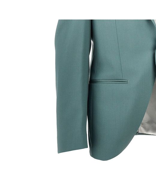 Tailored suit made from light wool. Lined single-breasted jacket with peak lapel, welt pockets, trimmed chest pocket, buttoned cuffs and rear slit. Pants with belt loops, zip fly, button tab closure, side slanted pockets and rear welt ones with button. Regular fit.